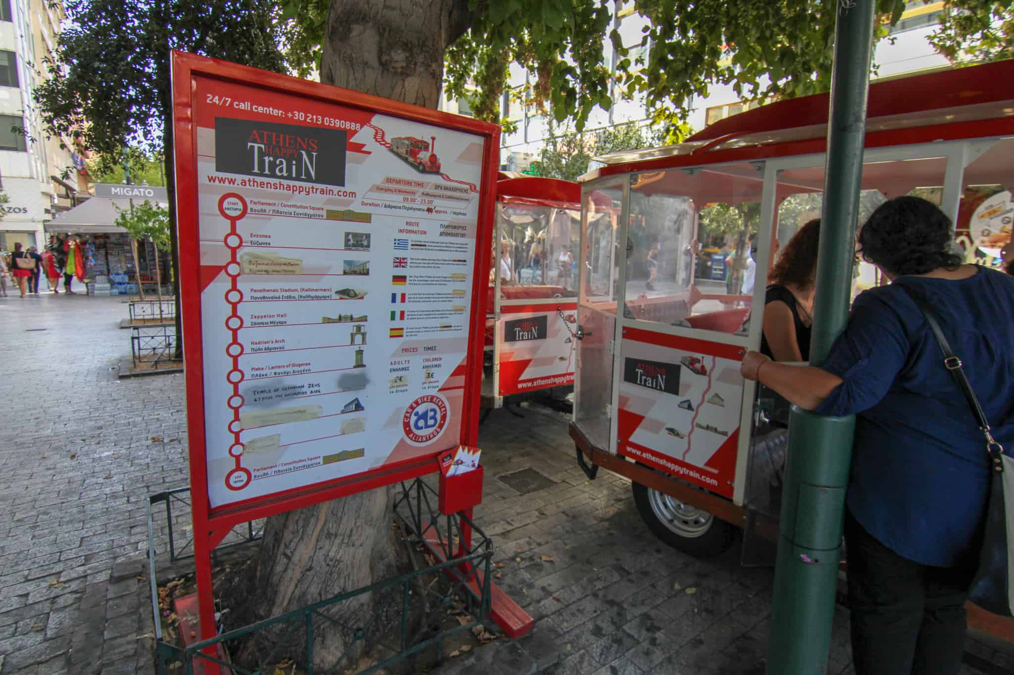 The 11 stops are: The Hellenic Parliament & Constitution Square, The Monument of the Unknown Soldier, The Benaki Museum, The Museum of Cycladic Art, The Byzantine and Christian Museum, The War Museum, The Panathinaiko Stadium, The Zappeion Hall, The Temple of Zeus & the Hadrian Arch, The Diogenes Lantern in Plaka and Plaka.