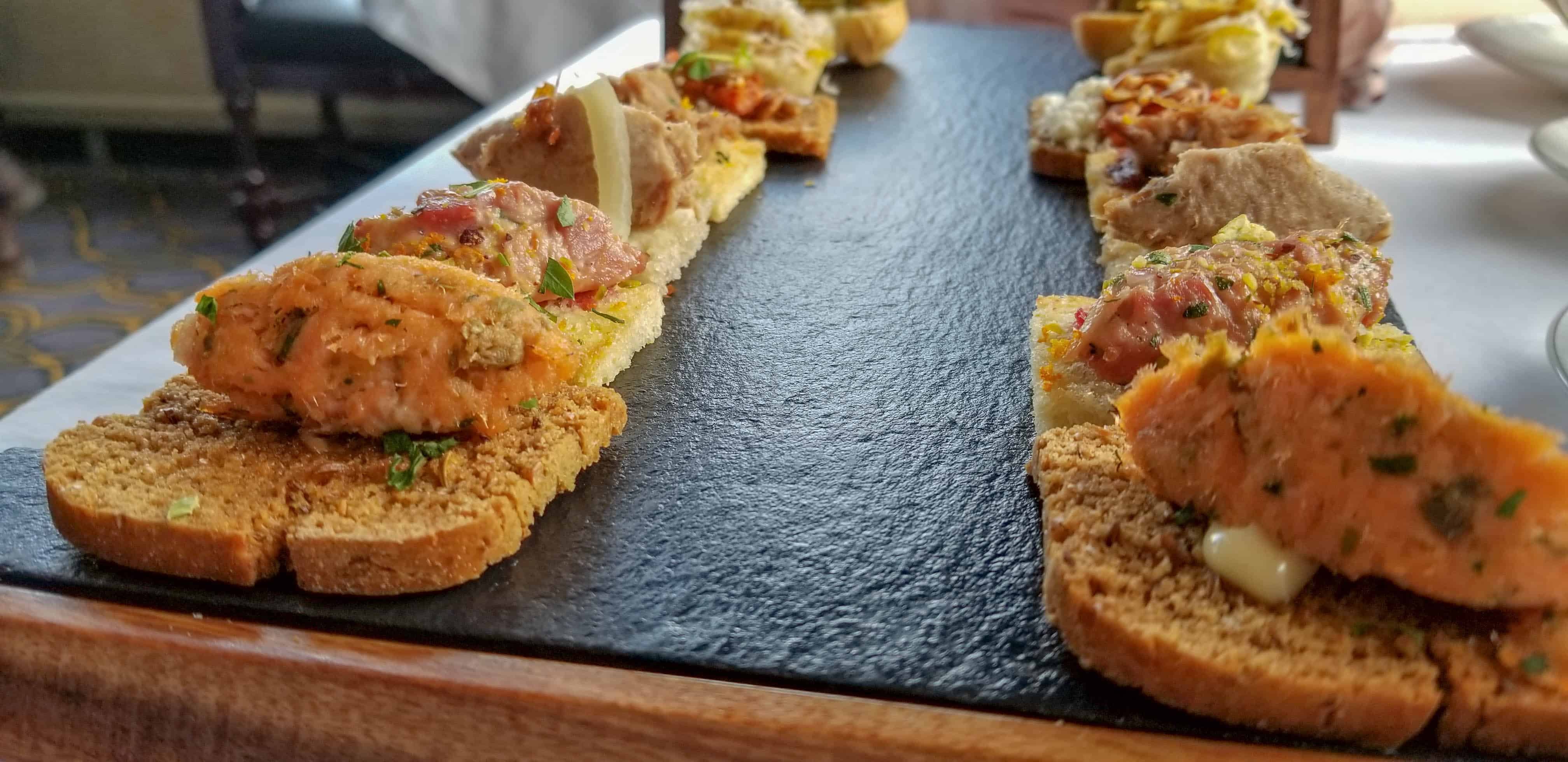 There are three variations of the afternoon tea. The standard afternoon tea is $65/person (CAD). You can add an Artisan cheese board with a variety of cheeses, chutney, baguettes and some grapes for an additional $28 (CAD) but this cost is split across two people. There’s also an extra fancy version of the afternoon tea that comes with a glass of champagne, the artisan cheese board and the regular afternoon tea. I want to say this was $95/person (CAD) but I can’t find a picture of that page of the menu so I’ve emailed the hotel and will update if I hear back!