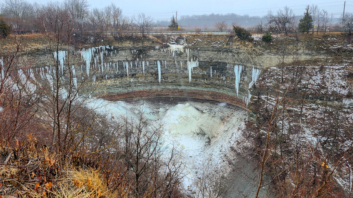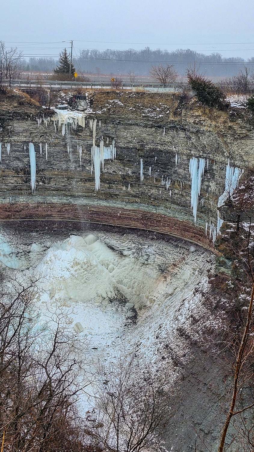 Albion Falls is one of the more popular falls in the Hamilton area. You used to be able to hike right up to it but unfortunately people used to climb the waterfall and there were a number of injuries as well as two deaths which has resulted in the falls being fenced off. There is a free parking lot close by and the walk up to the viewing platform is quite short so it’s definitely still worth the visit. Given the size and power that Albion Falls comes down with, it requires a prolonged period of very cold temperatures for it to freeze. We had visited on like the 3rd day of -15 to -20 Celsius degrees weather and it still wasn’t frozen solid! You can see in the pictures that the surrounding parts where less water is dripping has frozen but the bigger fall is still too powerful for complete freezing.