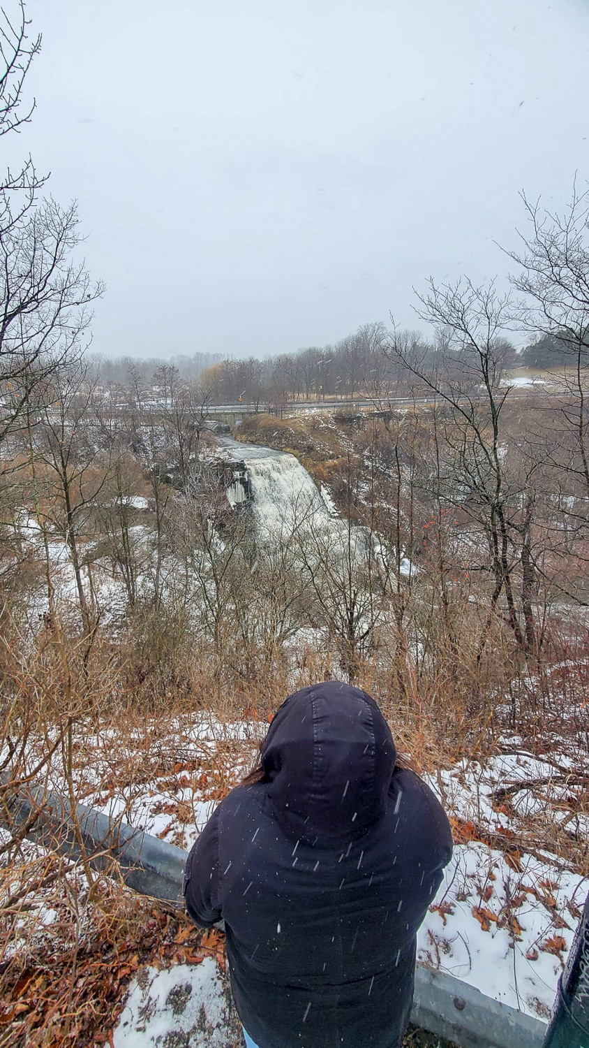 You can actually hike down to the bottom of the falls but it’s quite a strenuous journey. Depending on your comfort/fitness it can take anywhere from 30-60 minutes. We’ve done it in spring time and it was wet and muddy but worth it for the views. I haven’t done it in the winter so not too sure how hard the journey down the hill would be with snow/ice.
