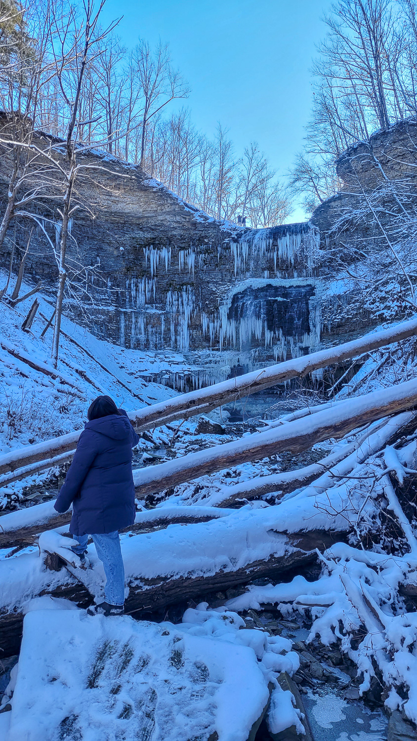 Tiffany Falls is incredibly popular and once the falls are frozen over people do actually go ice climbing on the falls (which to me is absolutely insane but hey to each their own!) so there’s usually a fair amount of people there on weekends. If you can, head there early or on a weekday to have the place to yourself!