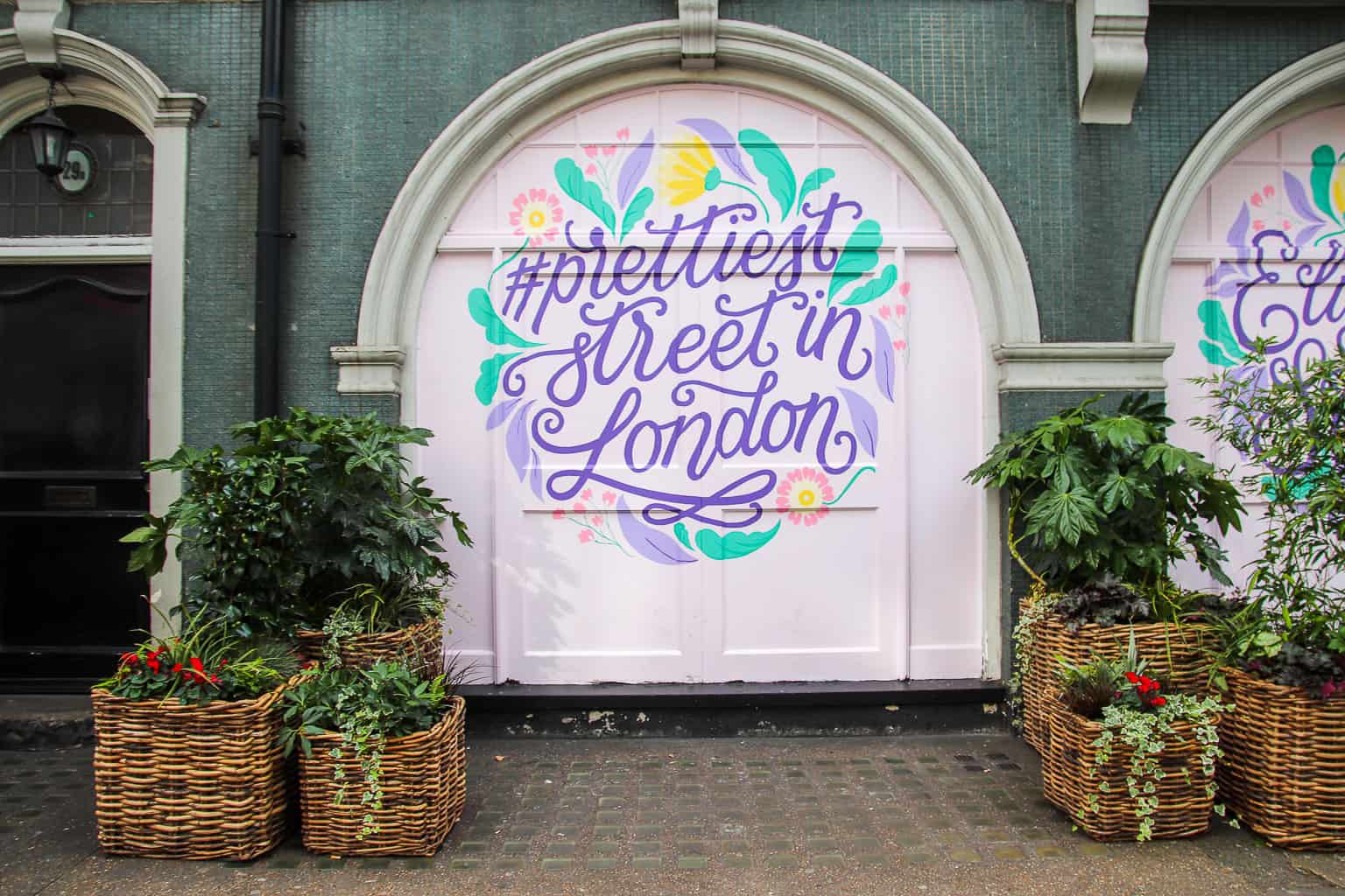 Location: Neal’s Yard (closest intersection is Neal Street and Short’s Gardens) Closest Tube Station: Covent Garden (approximately 3 minute walk from the station) Cost: Free unless you plan on shopping Hours: 24/7 – the stores have specific hours but the Instagram factor is the exterior which is always open Neal’s Yard used to be a hidden gem but thanks to Instagram and lots of blogger guides it definitely isn’t hidden anymore but that doesn’t make it any less instagrammable and any less deserving of a visit. The big sell here is the colourful store fronts, the greenery and the colorful details that make for great pictures. It should go without saying that this place gets extremely crowded. If you’re looking for empty pictures (which really are the best for Instagram) then you’re going to want to be here before 9 am (aka before the stores open). I’ve come during different times of the day and it’s a very, very big difference in crowds!Peggy Porschen & the stores on Elizabeth Street