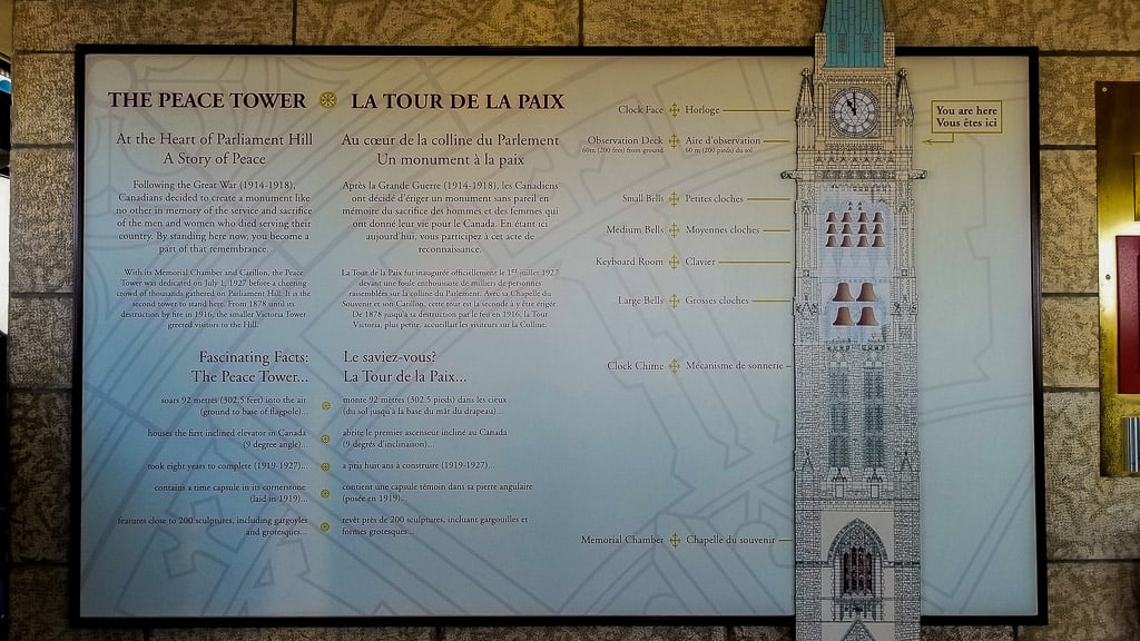 The Freedom Tower (the center part of the Center Block) and the Memorial Chamber are not part of the tour. If you have a ticket for a tour you have access to them after your tour and you’re free to go check them out. If you’re only interested in visiting the Peace Tower and Memorial Chamber you still have to get a ticket. They can be obtained at 90 Wellington Street on a first-come, first-served basis.