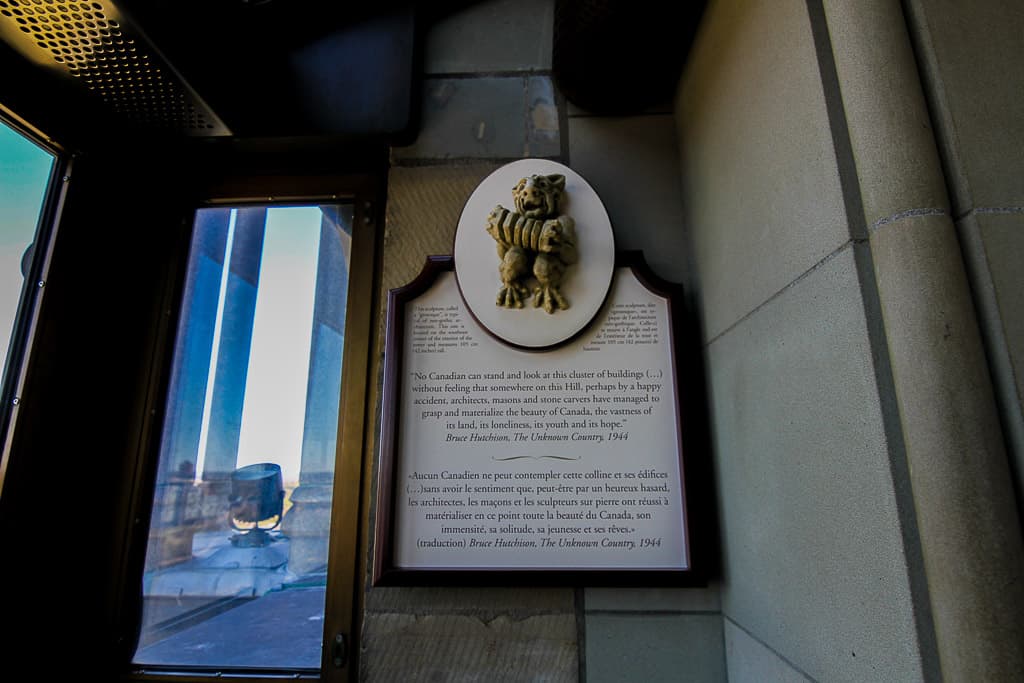 Walking up the path towards Center Block you’ll see a large metal fountain with a flame burning in the middle. This is the Centennial Flame. It commemorates Canada’s 100th anniversary as a Confederation. The flame was lit on January 1, 1967 and stays lit by natural gases. The plaques around the fountain represent each of the 13 provinces and territories of Canada (Nunavut was added in 2017). If you feel like throwing some coins in the fountain to make a wish you should know it goes towards a great cause. The money is collected and washed and then deposited into a government bank account. Every year it’s awarded to the winner of the Centennial Flame Research Award which has been around since 2005 and is awarded to a person with a disability to enable them to conduct research and prepare a report on a person with disabilities and their contributions to Canadian Life.