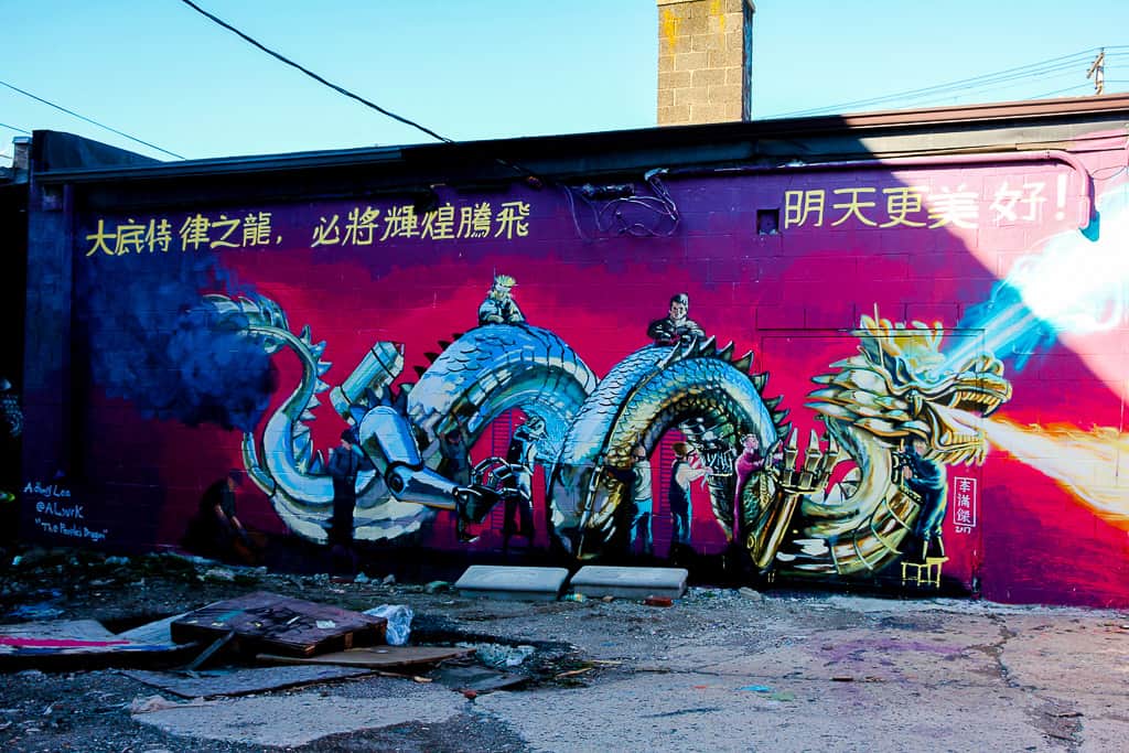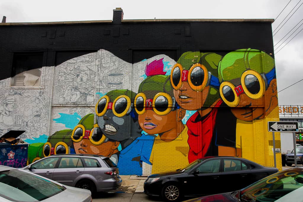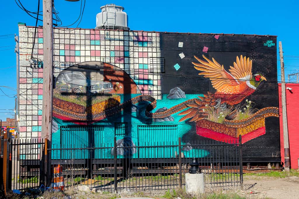 Corktown District is one of the oldest areas of Detroit. It’s also largely residential but it’s very much an up and coming neighborhood. We found ourselves there to eat at Slows BBQ (highly recommended!) but there’s a ton of other restaurants and had we had more time in the city it’s most definitely where I would have headed. We ended up with like an almost 2 hour wait for a table (seriously. I almost left) so we decided to walk around the neighborhood and explore a bit and given the stunning art we came across I’ll forgive the restaurant for the incredible wait time.