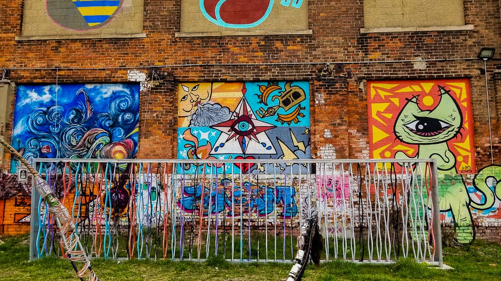 One of the biggest pieces in Corktown was this long mural that was right next to the abandoned train depot station. It had the brightest colours and you can see pieces of it in the below gallery.
