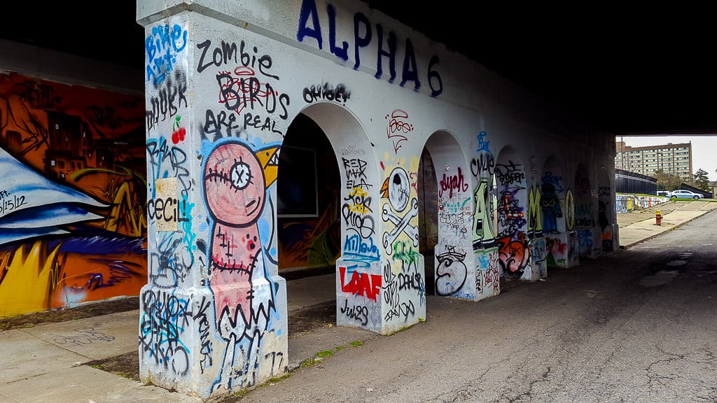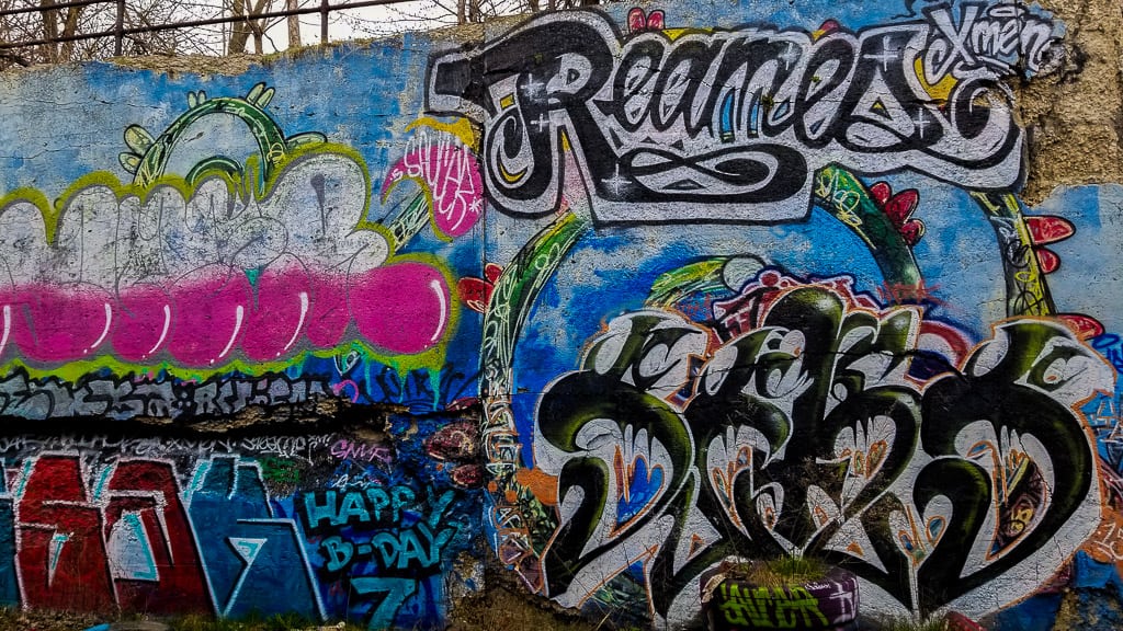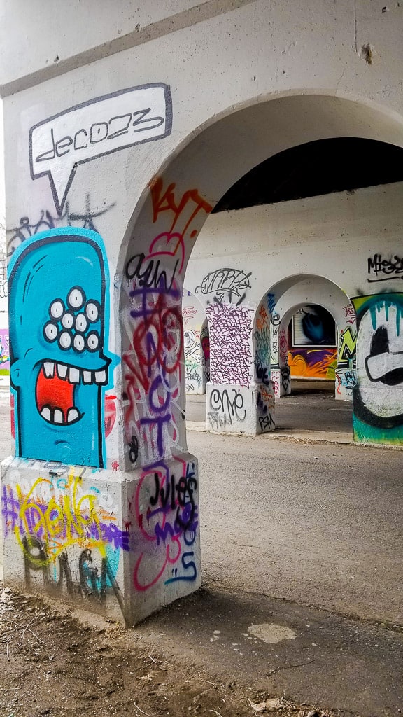 It’s impossible to miss the little underpass/bridge right next to the park. It’s so colorful it stands out immediately. It’s got some really cool pieces so definitely walk down to it. The only thing is that it’s dark in some parts but a good camera easily deals with that!