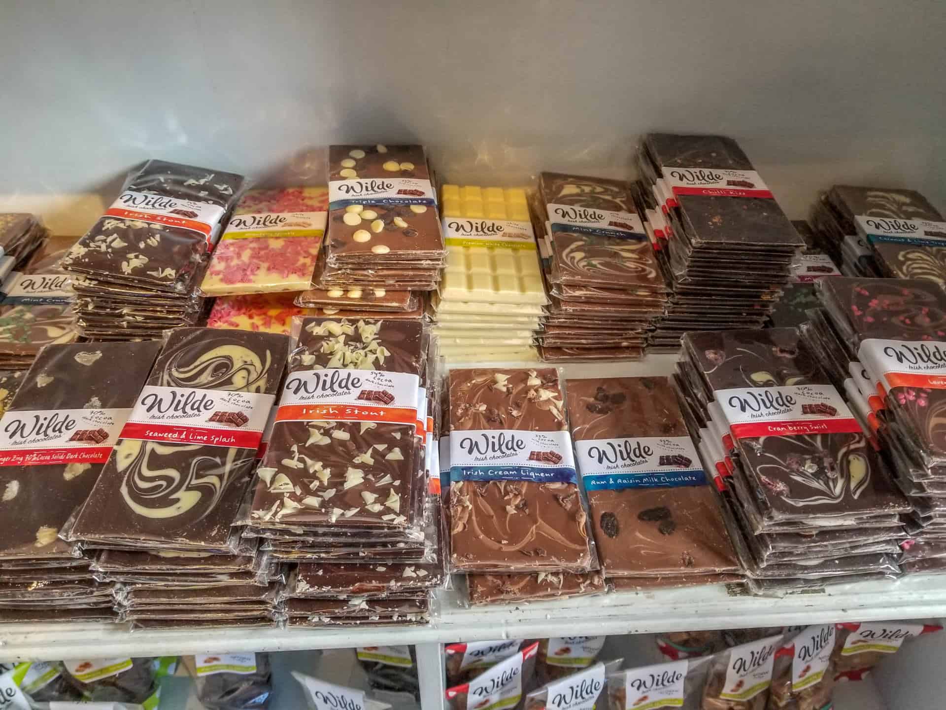 The store is an outlet store for Wilde Irish Chocolates which produces handmade Irish chocolates. There’s a huge number of products and flavours like fudges, bars and spreads. Flavours range from Irish Stout to White Chocolate to Strawberry Sprinkle.