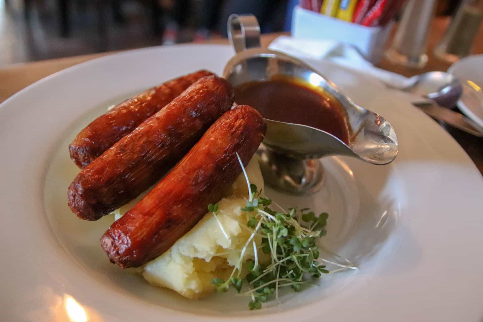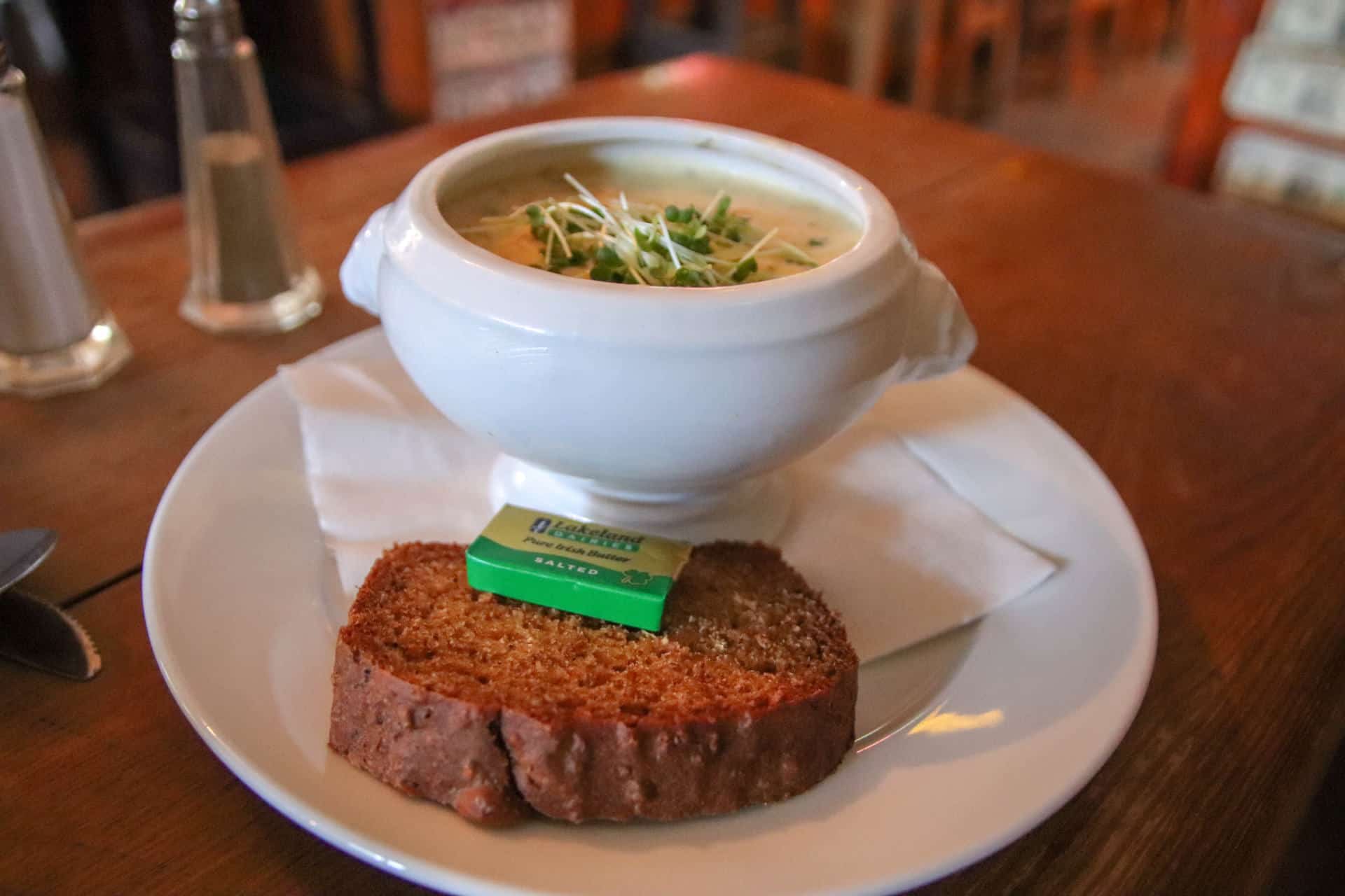 Doolin has 3 pubs (O’Connors, McDermott’s and McGann’s) that all serve food and have live music. They do get really, really busy so go earlier in the day if you want food. We stopped by for lunch at Gus O’Connor’s Pub and had to wait about 20 minutes for our food but it was worth it as it was quite tasty. We opted for some quintessential Irish dishes like bangers & mash and clam chowder and Irish bread.