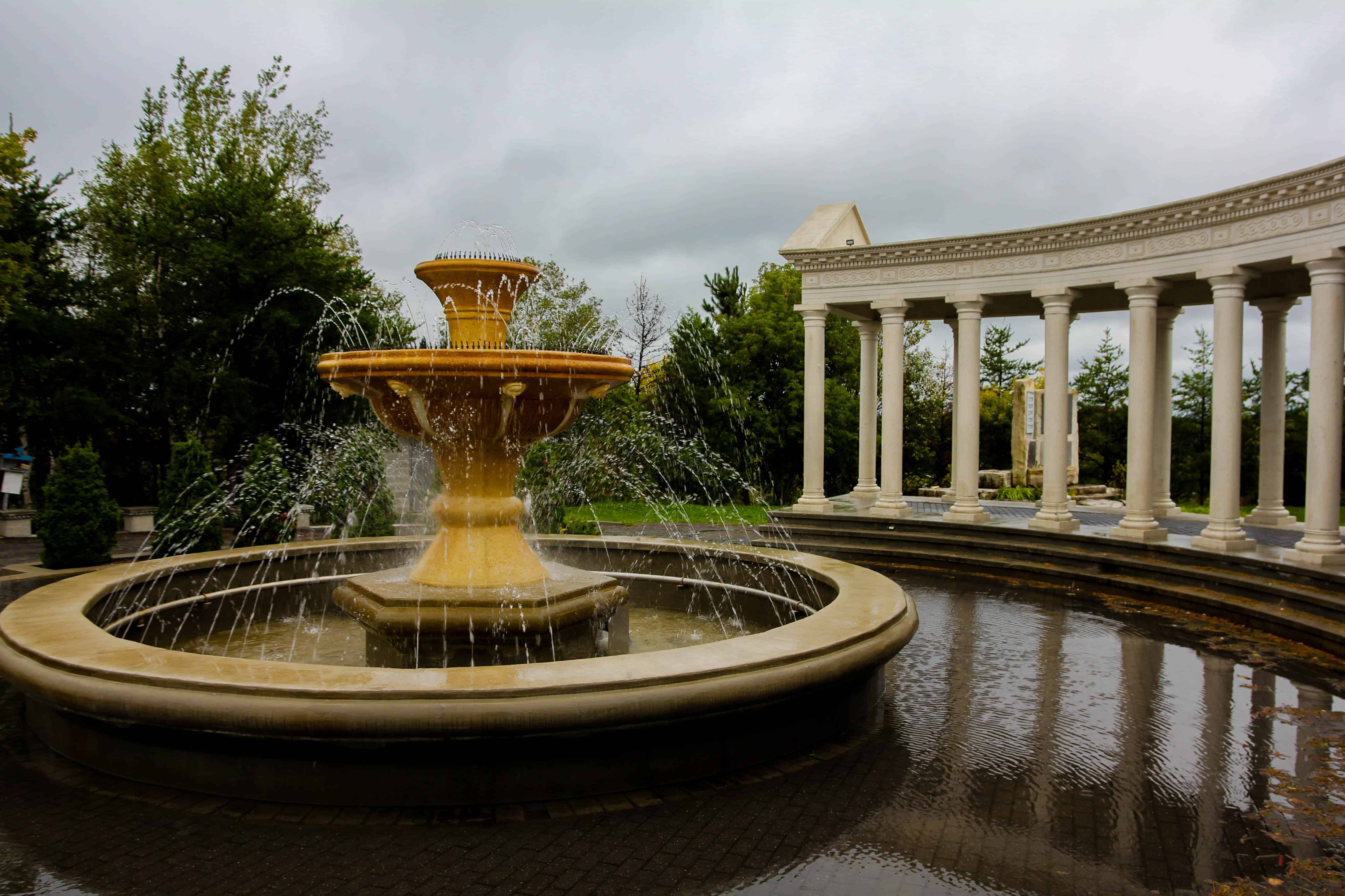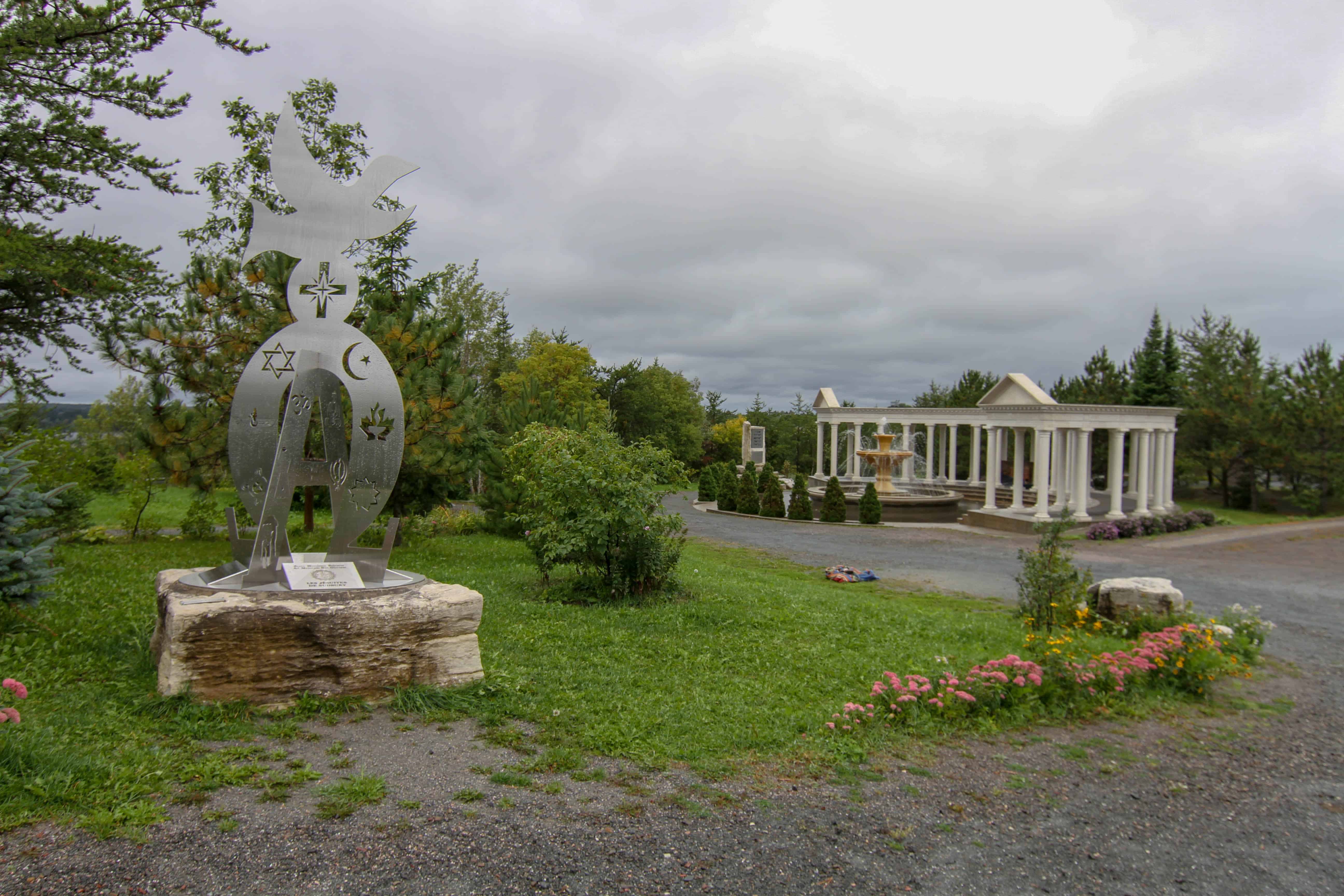 Located at 271 Van Horne Street in downtown Sudbury you’ll find Our Lady of Lordes Grotto Park, also known as Grotto Park. While it is a Catholic Shrine that is slightly irrelevant to me as it’s a beautiful park. There’s a ton of statues (mostly religious) but the center piece is the fountain and the sort of Roman pillars around it. It’s beautiful and if you enjoy photography like I do it’s a fantastic spot to get some great pictures and enjoy some nature! You can easily spend an hour walking around and taking it all in. Best of all though is that it’s free and as far as I can tell there are no opening hours (there was no locked fence). There’s also a bonus in the fact that there is a cool view of Sudbury you can check out right by the parking lot!
